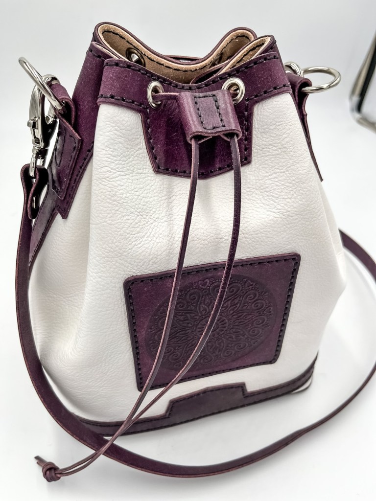 The Beautiful Bucket Bag should need minimal care. The White leather has been coated with an acrylic finish so it will be impervious to water or stains, but when it starts to look dingy and need a cleaning, Fiebing’s Saddle Soap (white, not yellow) should do the trick, use the saddle soap as directed to GENTLY cleanse the leather. Allow to dry naturally in an upright position. Do NOT use heat to dry the leather as this can dry out the leather and cause unwanted cracking.